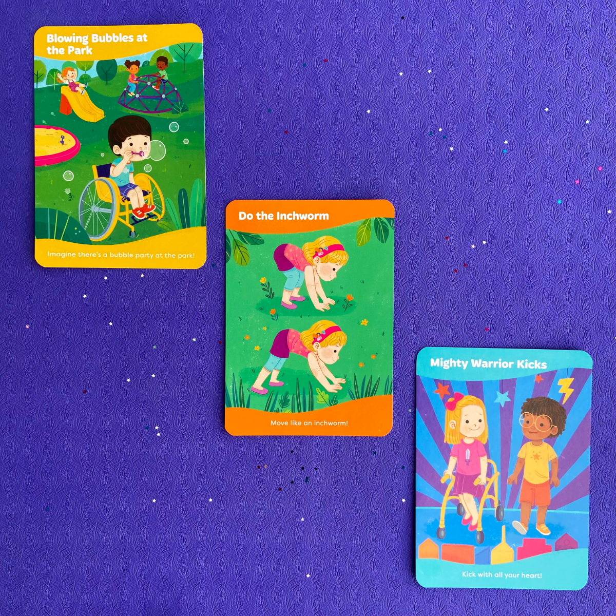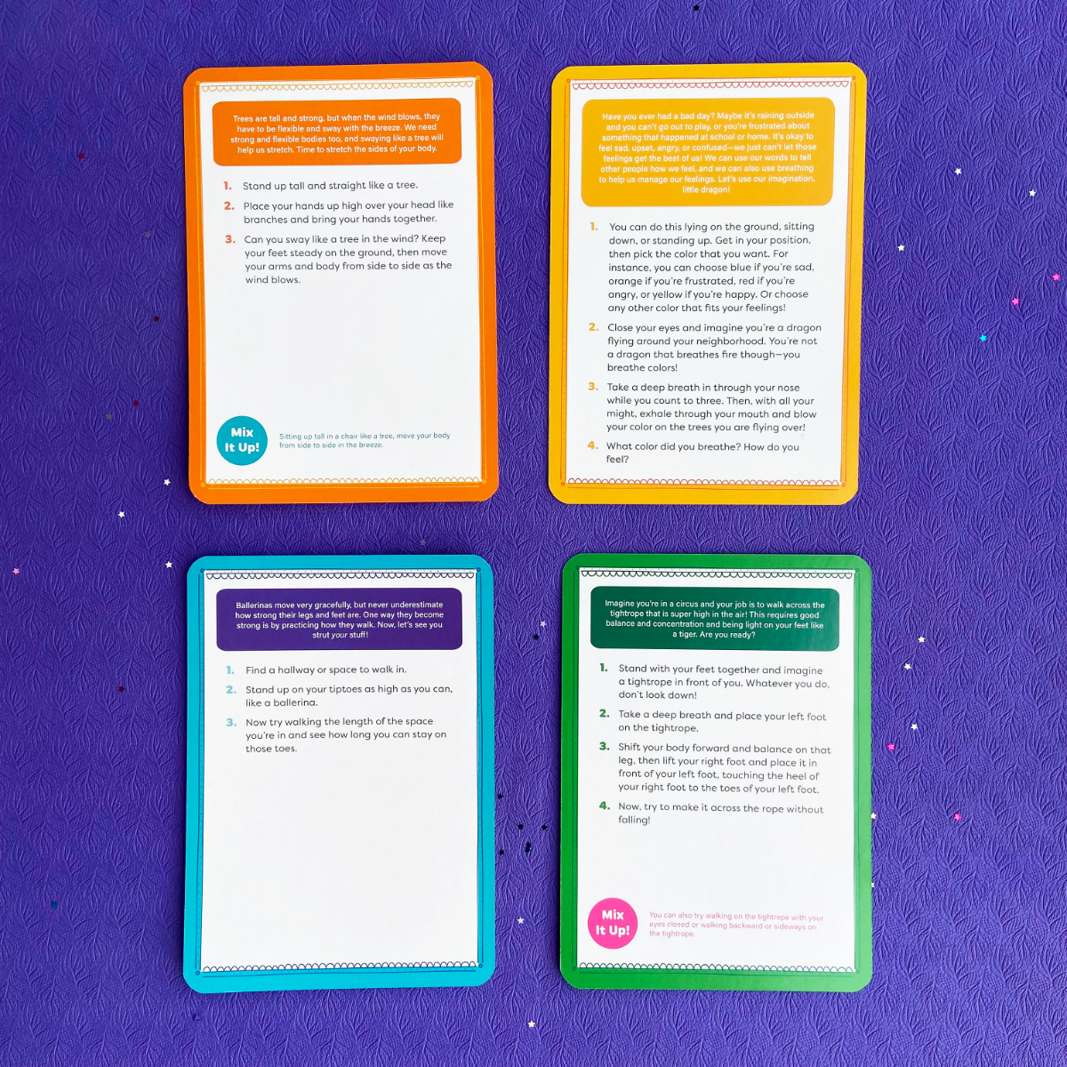 Jump over lava, zoom like a racecar driver, and balance like a flamingo with this inclusive activity deck that inspires kids’ big imaginations and gets their little bodies moving. These 48 cards—for all levels of ability—celebrate movement diversity and explore fun categories of creative movement including: