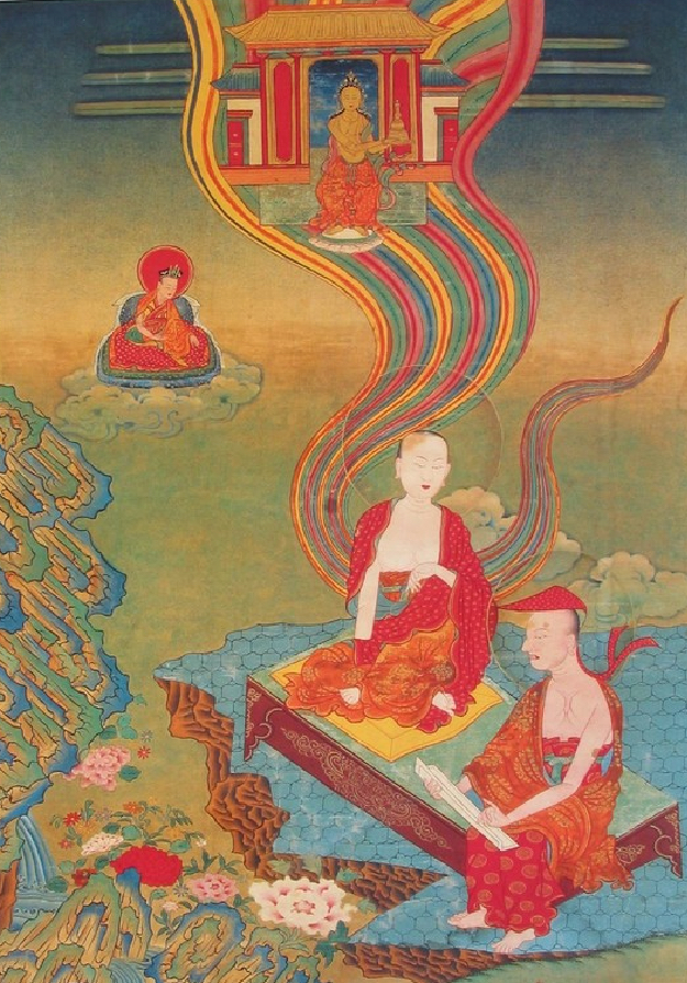 In an instant, Asaṅga was transported to the heavenly realm of Tuṣita, and here Maitreya revealed to him the full beauty of the Supreme Vehicle, showing him the inconceivably profound and vast meanings that liberate the hearts of the Bodhisattvas and enable them to lead all beings into consummate enlightenment. When Asaṅga returned to this world he was transformed, a living treasury of the Dharma. Imbued with Maitreya’s powerful teachings, he entered history as the master who established the Approach of Vast Activity, and so, comparable only to Nāgārjuna, he continues to render unimaginable service to the teachings of the Buddha and to sentient beings.