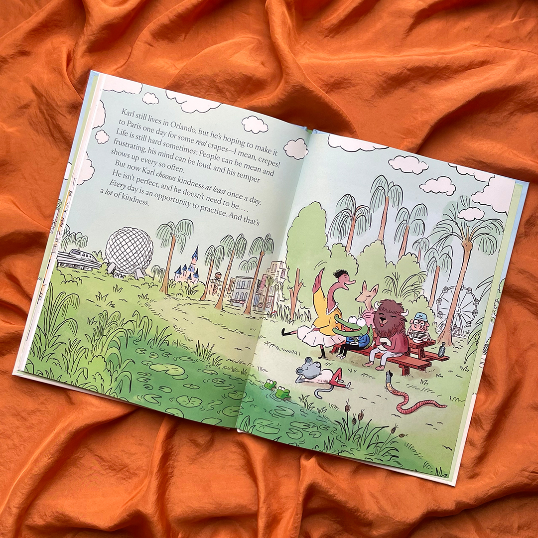 Karl is a crocodile who lives in Orlando. He loves cardigans, crepes, and combing his hair. And . . . he has a terrible temper! Full of lovable animal characters, this playful story is a children’s adaptation of Sharon Salzberg’s beloved book Lovingkindness: The Revolutionary Art of Happiness. Like the original, it asks the question, “Why does what we do, say, and care about make a difference?” The book explores how generosity and mindfulness contribute to a life of happiness and connection.