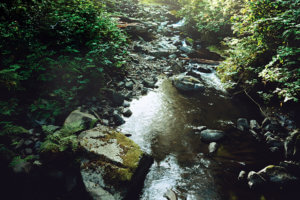We had been out all morning, walking in the green-lit stillness of the primeval rainforest, with only birdcalls and water splashes breaking the silence. Now we were squatting on the bank of a pond a short distance from the vine-covered bus that served as John’s office for his rainforest activism around the Pacific Rim. Three years before we met, John’s life had been seized by a larger purpose when he found himself defending the Nightcap Range, a vestige of the great primordial rainforests of Gondwanaland, Australia’s mother continent.