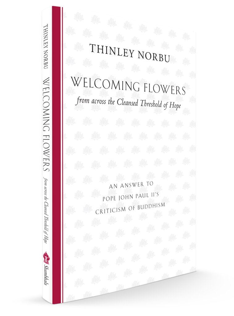 Welcoming Flowers is a pointed critique of the Buddhism chapter of Pope John Paul II’s 1994 best seller, Crossing the Threshold of Hope, written at the request of some Polish students. In responding to the false charges of Buddhists’ indifference to the world and rejection of reality, Rinpoche clarifies the Buddhist doctrines of detachment and enlightenment. In addition, he covers the topics of good and evil, human nature, karma, cosmology, and dualistic mind, bringing them into conversation with the Christian perspective as presented by the Pope. The intention is not to shoot back arrows in an attack on Catholicism but to spread “welcoming flowers”—that is, to present the exalted teachings of the Buddha in all their loveliness. In this sense, the book serves as a helpful introduction to the Buddhist worldview.